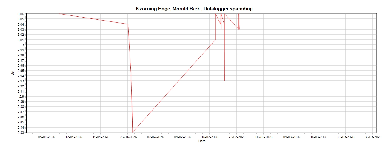 Kvorning Enge, Datalogger spænding, 90 dage.
