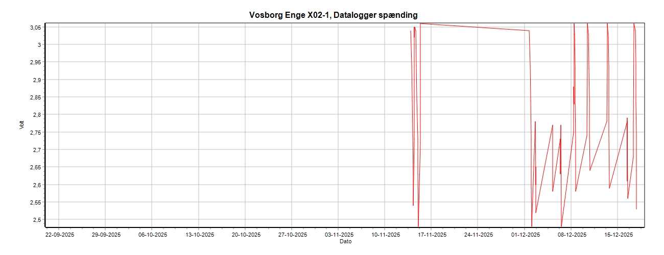 Vosborg Enge, Datalogger spænding, 90 dage.